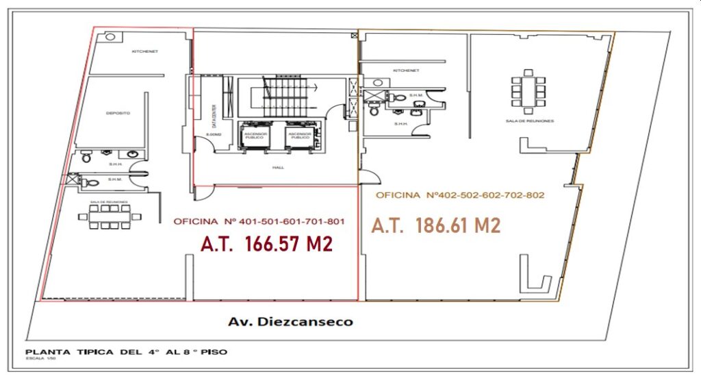Los 2 Ascensores son de marca OTIS, que van a todos los pisos y sótanos, todas las oficinas se encuentran implementadas, con piso de porcelanato, falso techo, sistema contra fuego, sensores de humo, luminaria, conexiones eléctricas y de comunicación, mamparas de vidrio para las salas de reuniones, oficinas de gerencia y del personal. Todos los vidrios de las ventanas son insulados y cuentan con ventanas proyectantes, en los 2 frentes del Edificio.